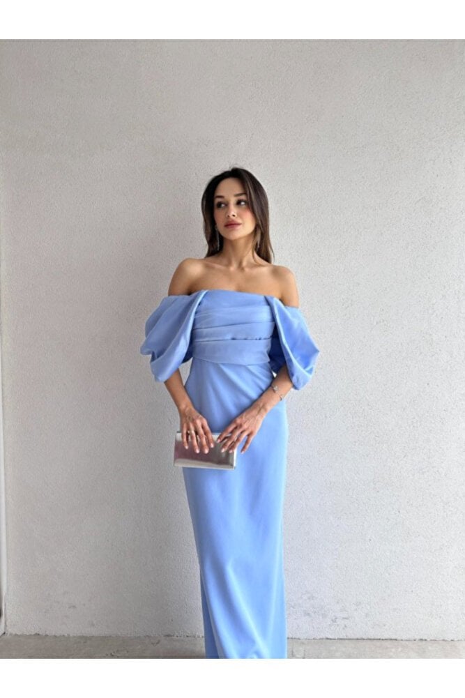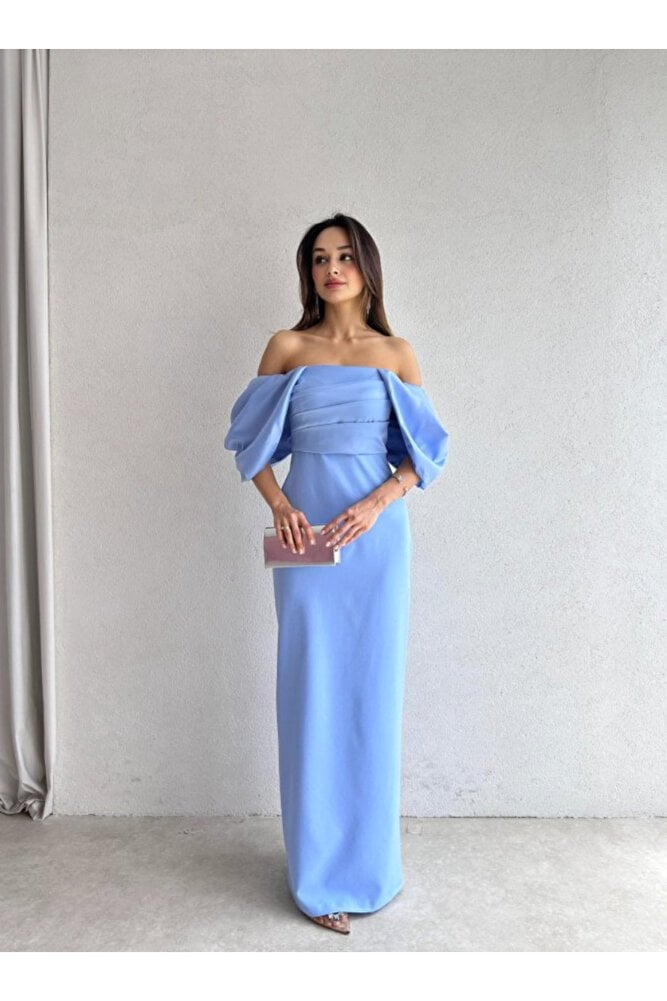 - Mavi tonlarındaki zarif tasarımıyla dikkat çeken bu elbise, her ortamda şıklığınızı tamamlar.; - Sırt dekoltesi ile feminen detaylar ön plana çıkarak göz alıcı bir görünüm sunar.; - Uzun kollu ve balon kol detayları ile modern ve trend bir stil oluşturur.; - Krep kumaş yapısı sayesinde hem rahat hem de şık bir kullanım sağlar.; - Fermuarlı kapama şekli pratik kullanım imkanı sunarken, astarlı yapısıyla konforlu bir deneyim vadediyor.; - Slim fit kalıbı vücut hatlarınıza mükemmel uyum sağlayarak zarif bir siluet çizer.; - Cepsiz tasarımıyla minimalist çizgileri ön plana çıkaran bu elbise, kemersiz yapısıyla sade ve şık duruşunu korur.; - Balık sırtı detayları ile sofistike bir dokunuş eklerken, bisiklet yaka tasarımı modern bir hava katar.; - Tüm sezon boyunca rahatlıkla tercih edebileceğiniz bu elbise, her mevsimde stil sahibi olmanız için idealdir.