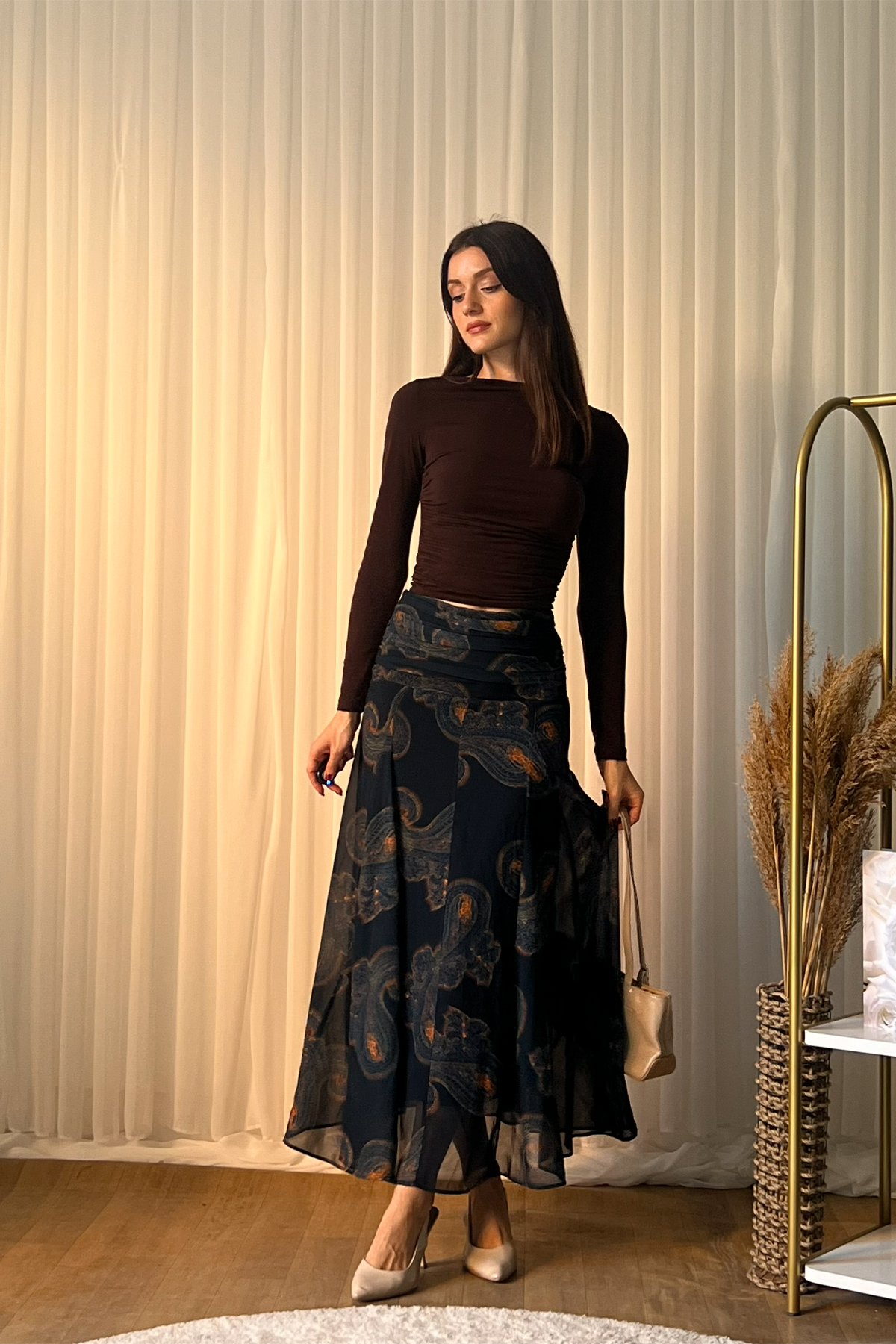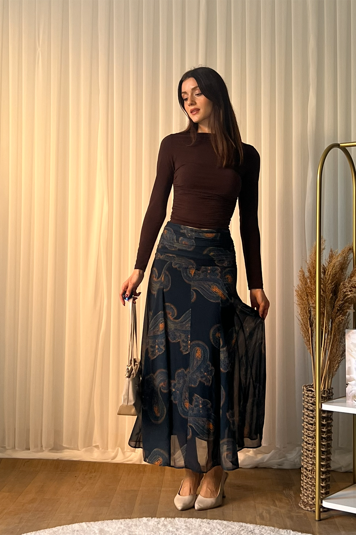 Günlük şıklıktan özel davet kombinlerine kadar geniş bir kullanım alanı sunan bu etek, gardırobun kurtarıcı parçalarından biri olur.