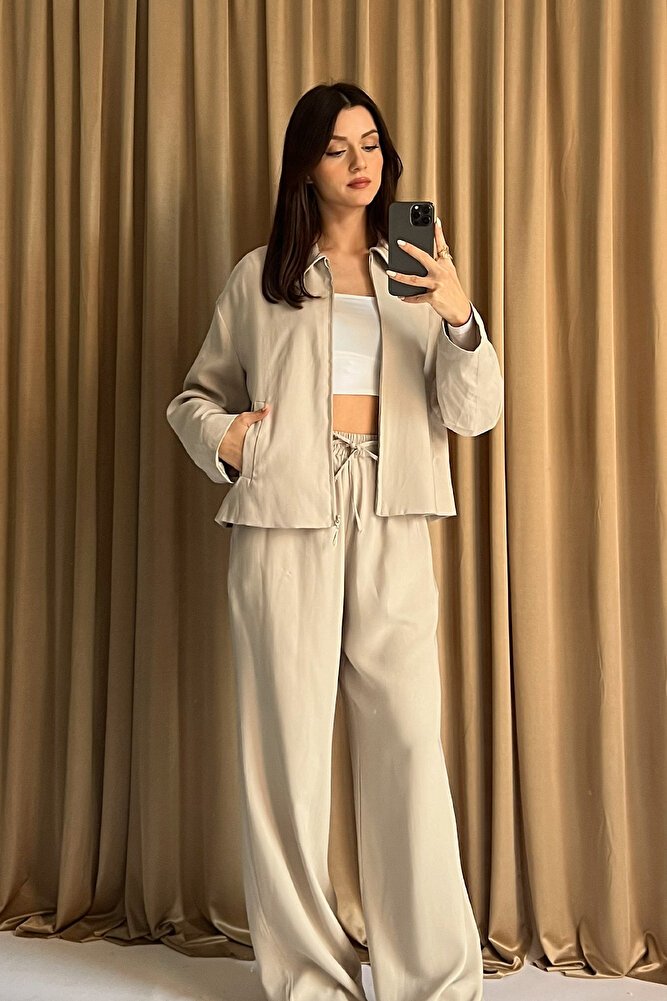 Modern ve rahat tasarımıyla günlük şıklığı bir arada sunan kadın ikili takım, şehir stilinin vazgeçilmez parçalarından biri olur;