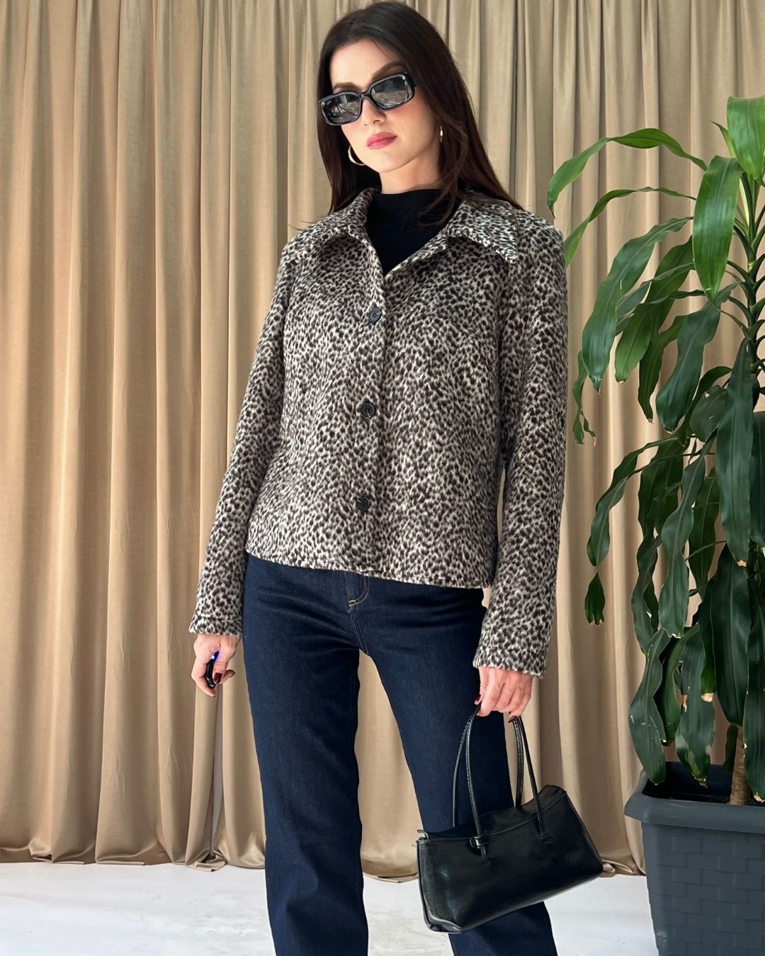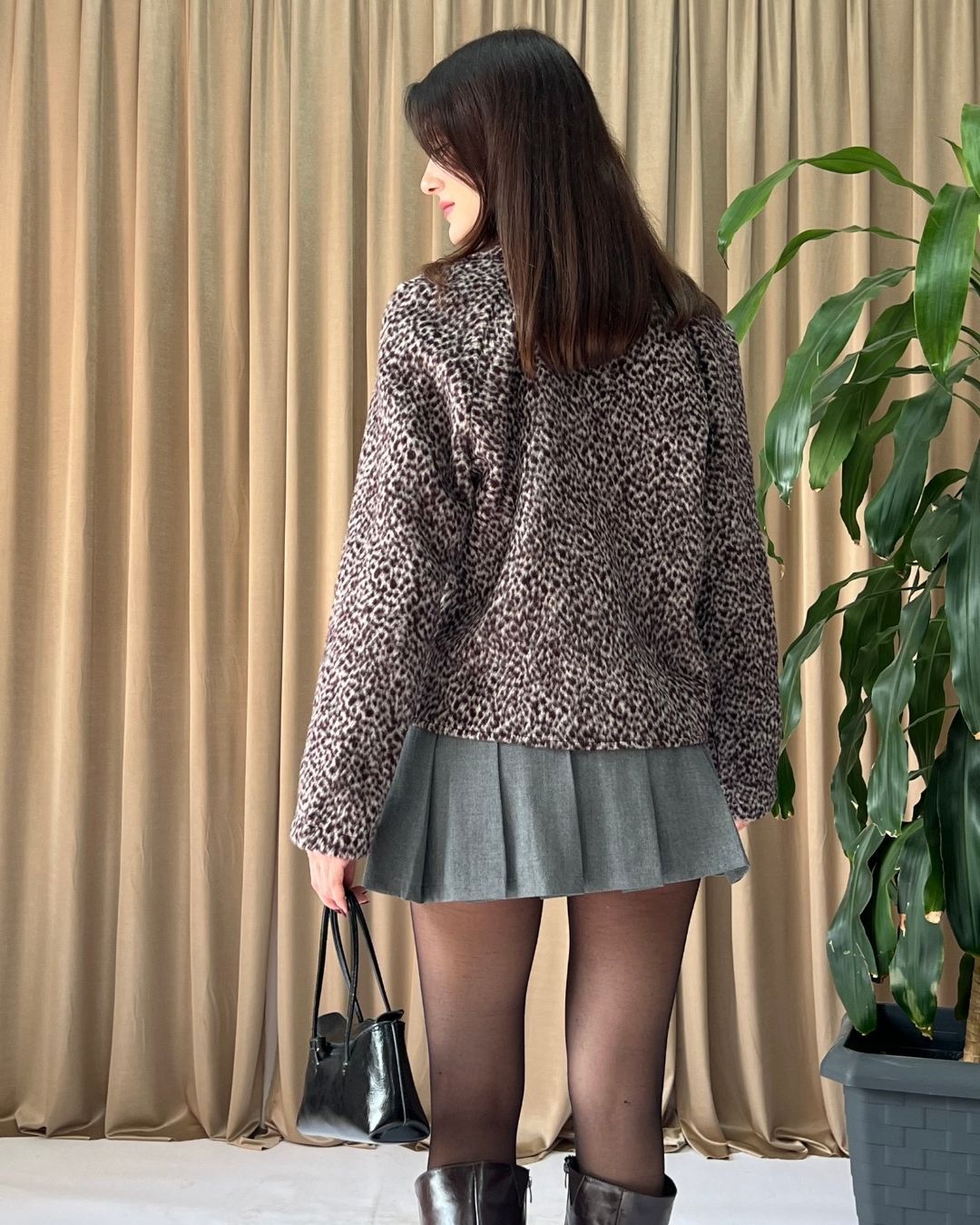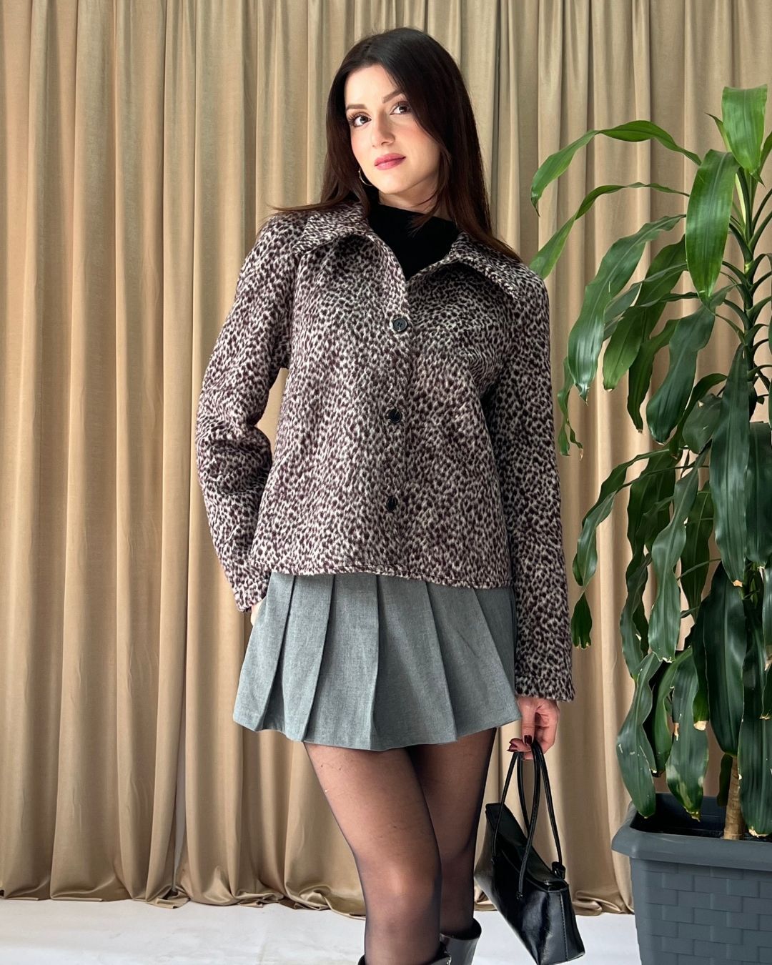 Stil sahibi bir görünüm için tasarlanan bu kadın leopar desenli kısa ceket, sezonun en trend parçalarından biri.