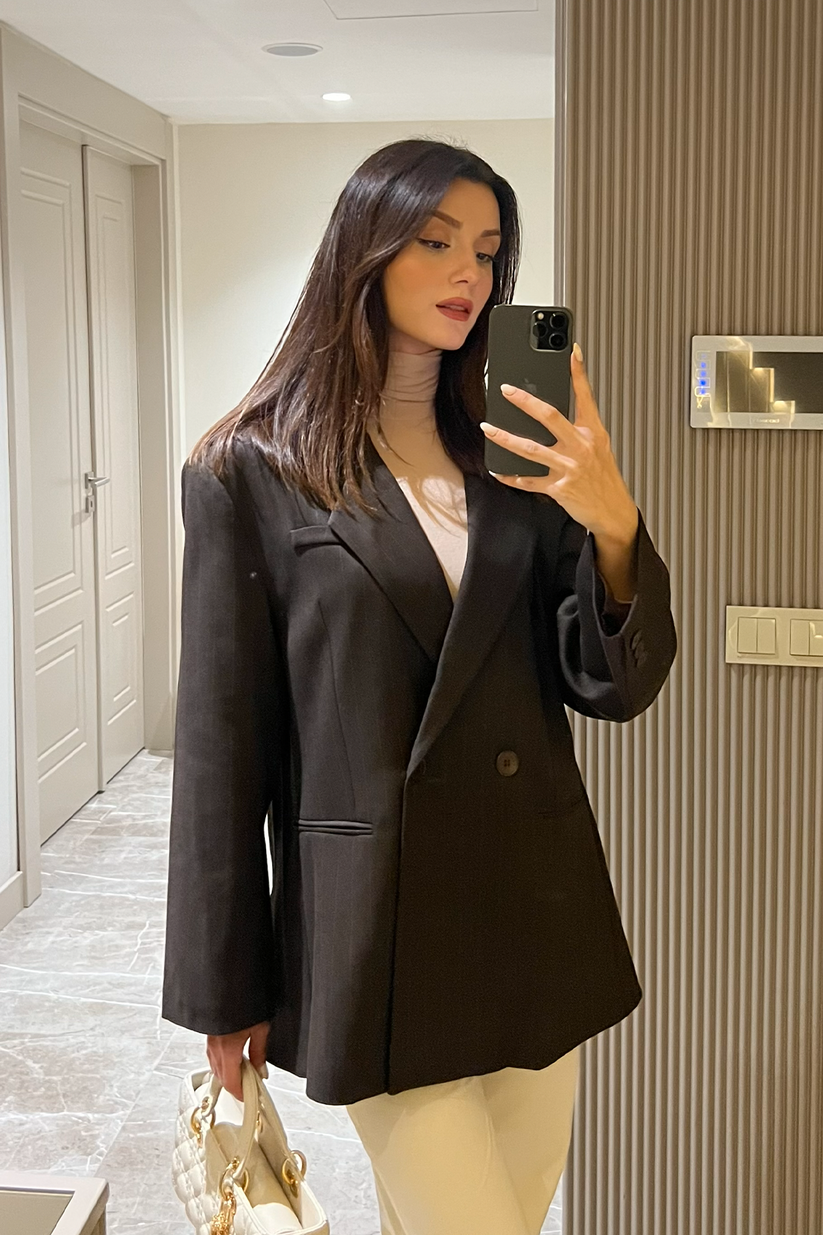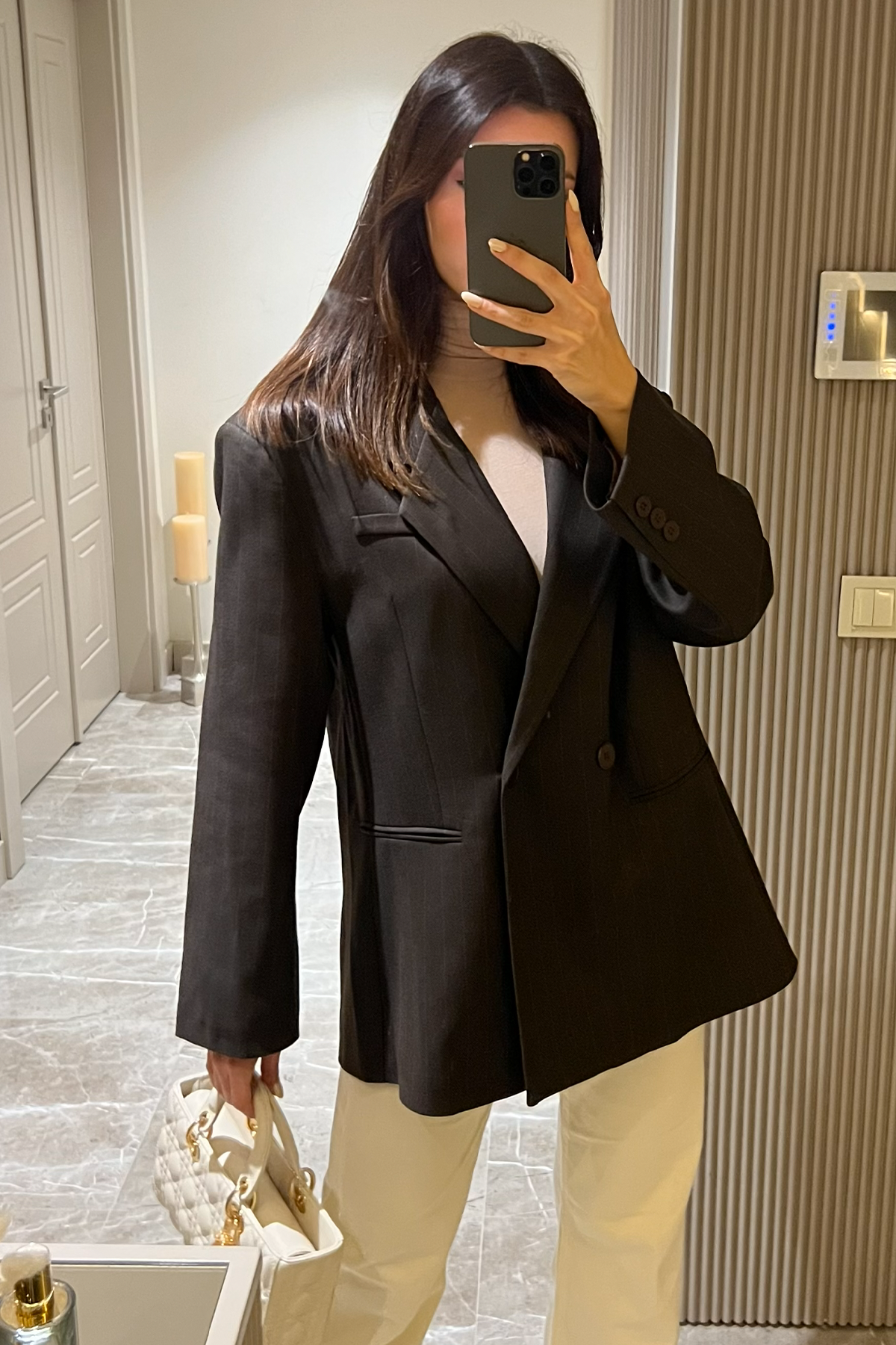 Kruvaze blazer formu ile klasik şıklığı zamansız bir stile dönüştürür;